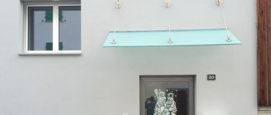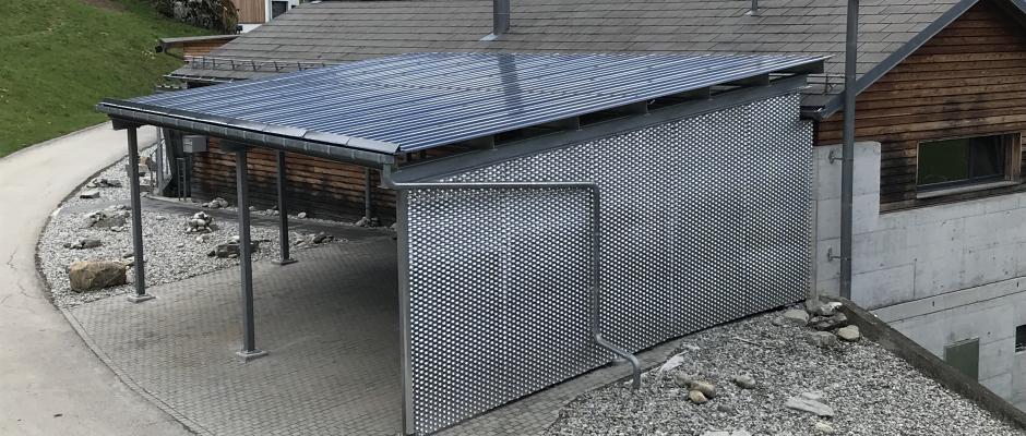 Gerne verschönern wir Ihren Eingangsbereich mit einem Vordach, welches den Eingang zudem vor der Witterung schützt. Auch Auto- und Velounterstände montieren wir problemlos an Ihre Fassade.